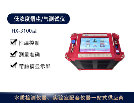 HX-3100型低濃度煙塵/氣測試儀應用皮托管平行等速采樣法采集固定污染源排氣中的顆粒物,輔以實驗室手工稱重法或β射線直讀法測定煙塵排放濃度;應用定點位電解法或光學吸收法定量測定煙氣成分。本產品可實時測量煙道內動壓、靜壓、煙溫、含濕量、煙氣(O2 、SO2 、CO、NO、NO2、H2S、CO2等)濃度等參數,自動計算煙道內氣體流速、流量,煙塵煙氣折算濃度、排放量;適用于各種鍋爐、煙道、工業爐窖等現場的排放測定、設備除塵脫硫效率的測定等。